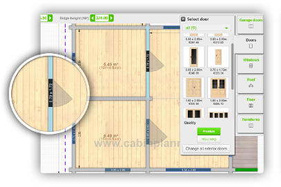 Cabinplanner© provides its user possibility of choosing different types of wood thickness, roof style, windows and doors and many other technical features which makes our configurator very convenient and versatile. Our configurator has user friendly interface and is made for intuitive use. We constantly work on developing our configurator to offer even more options and possibilities.